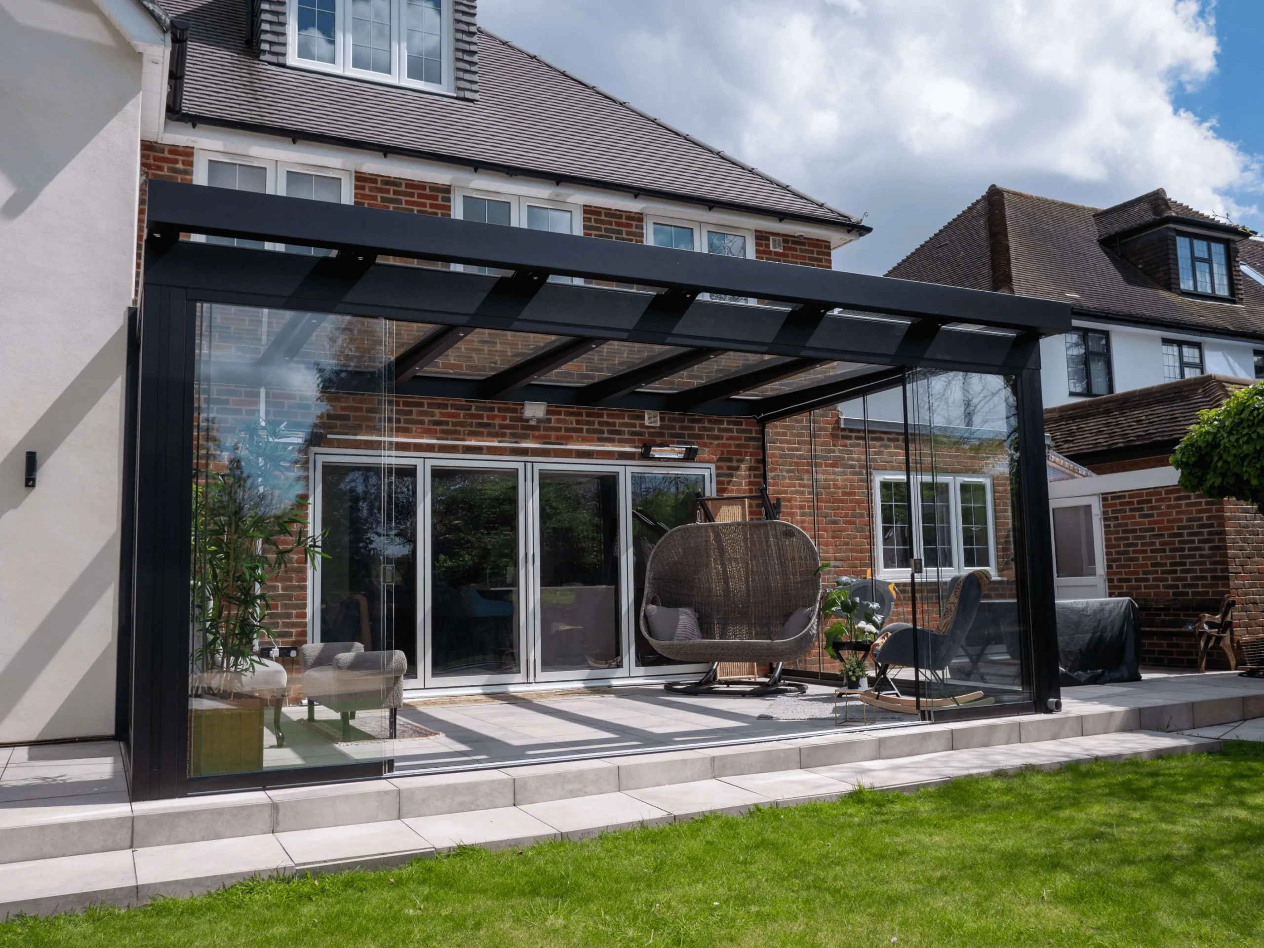 The objective of this project was to create a sheltered outdoor lounge that could be used in various weather conditions. Our client wanted a space that provided the experience of being in the garden while offering protection from unpredictable weather.